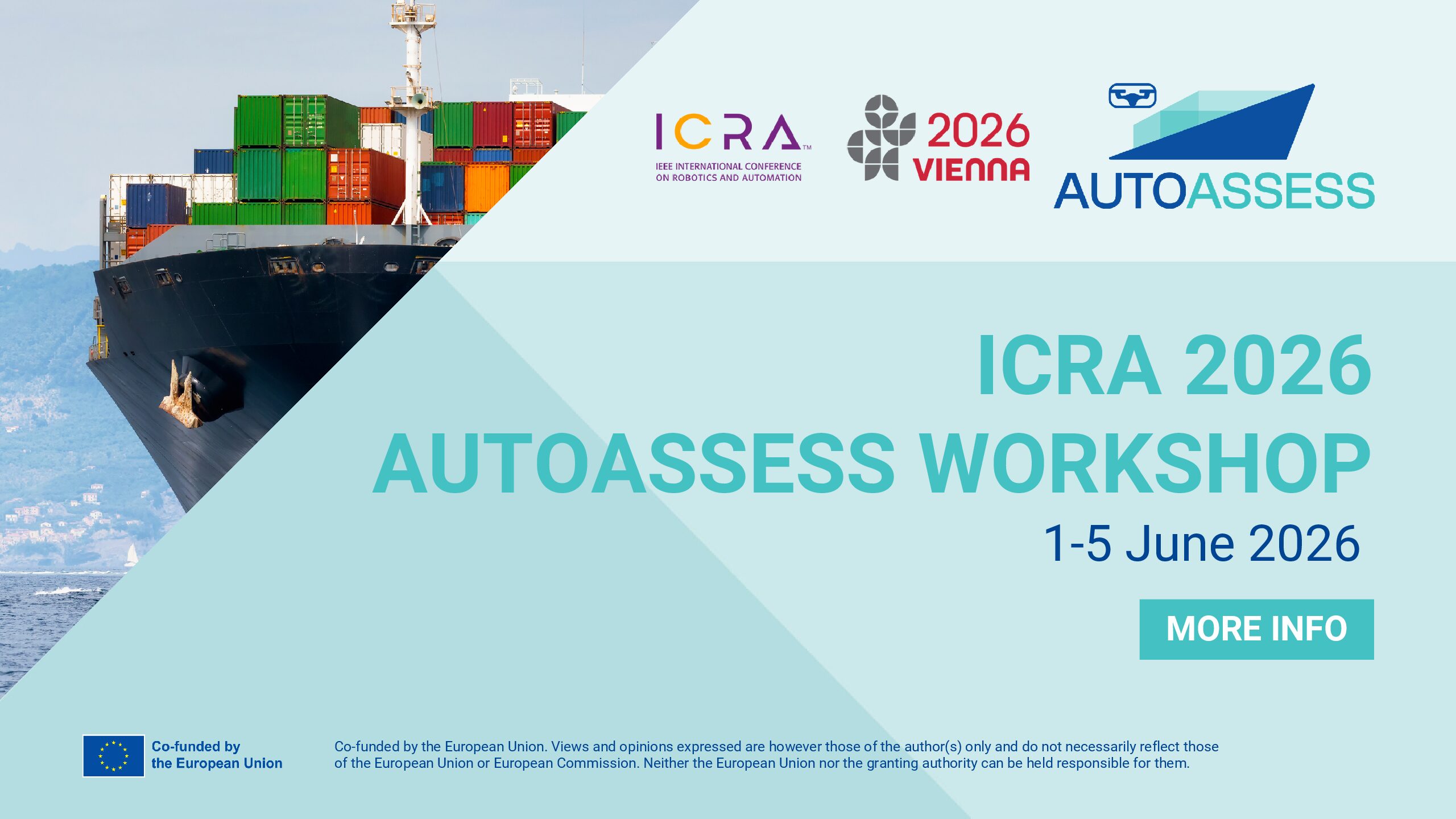 The AUTOASSESS workshop on inspection of marine infrastructure with Aerial Robots is taking place at the IEEE International Conference on Robotics and Automation (ICRA) 2026, held from June 1–5 in Vienna.